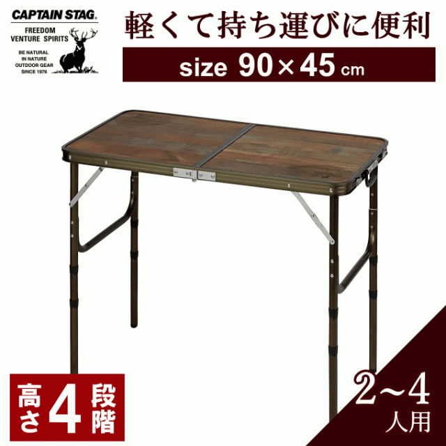 フォールディングテーブル アウトドア テーブル 90-4P5 高さ調節 4段階 折りたたみ 軽量 アルミ コンパクト 折り畳み 2〜 4人用 キャプテンスタッグ