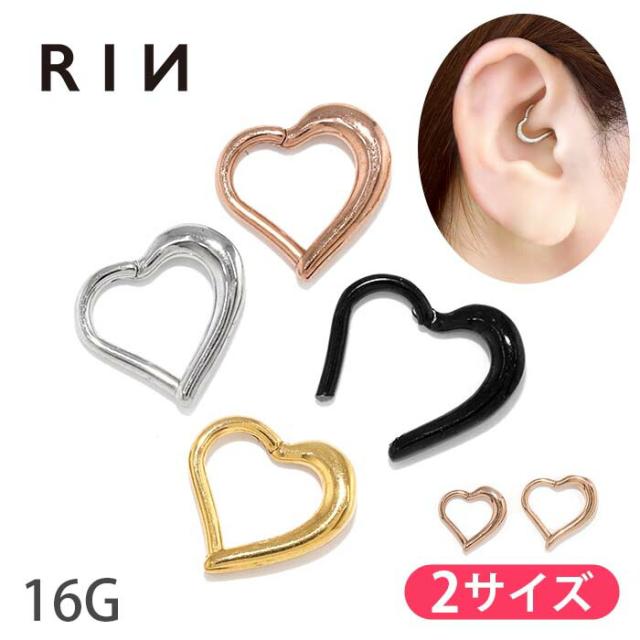 ボディピアス 軟骨ピアス 16G 金属アレルギー 医療用ステンレス サージカルステンレス ハート セグメントクリッカー セグメントリング シルバー ゴールド ピンクゴールド ブラック フープピアス レディース 軟骨 片耳用 ワンタッチ