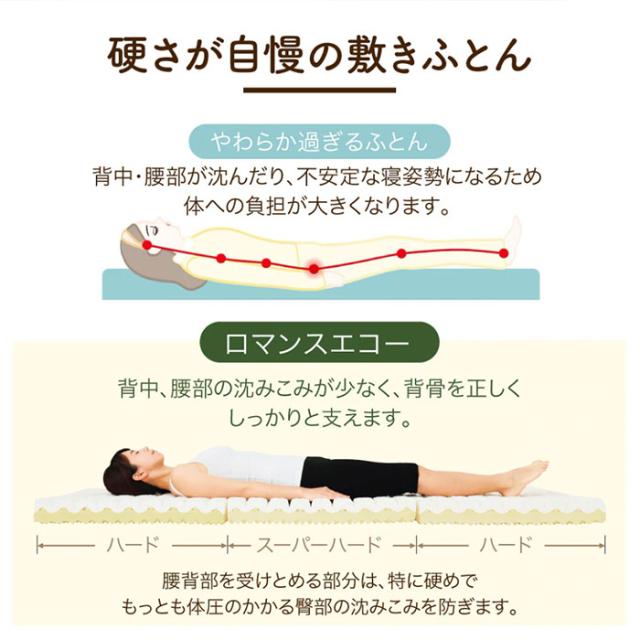 敷ふとん 敷布団 敷き布団 マットレス ウレタン 硬い ハード 腰痛 腰 しっかり 硬め ロマンス エコー 高反発 リバーシブル 日本製 父の日 母の日 敬老の日 1910-7009
