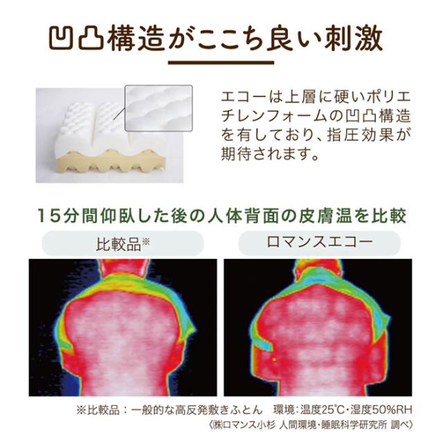 ロマンスエコーは背中、腰部の沈み込みが少なく、背骨を正しくしっかりと支えます。