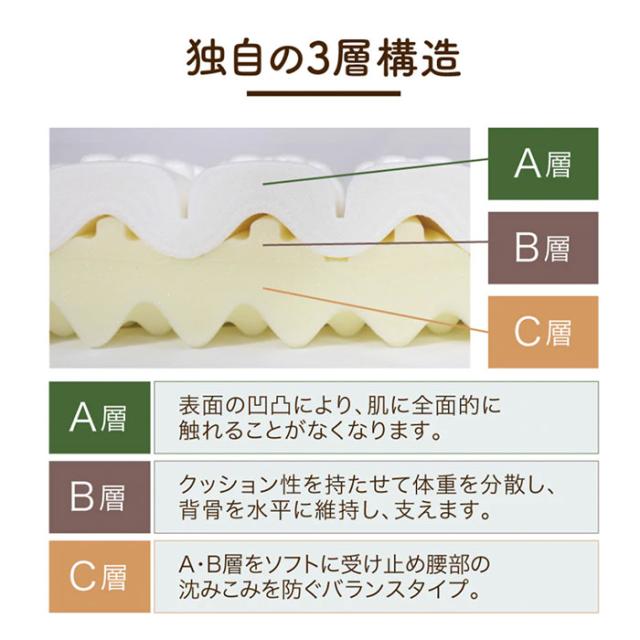 C層:A・B層をソフトに受け止め腰部の沈み込みを防ぐバランスタイプ。