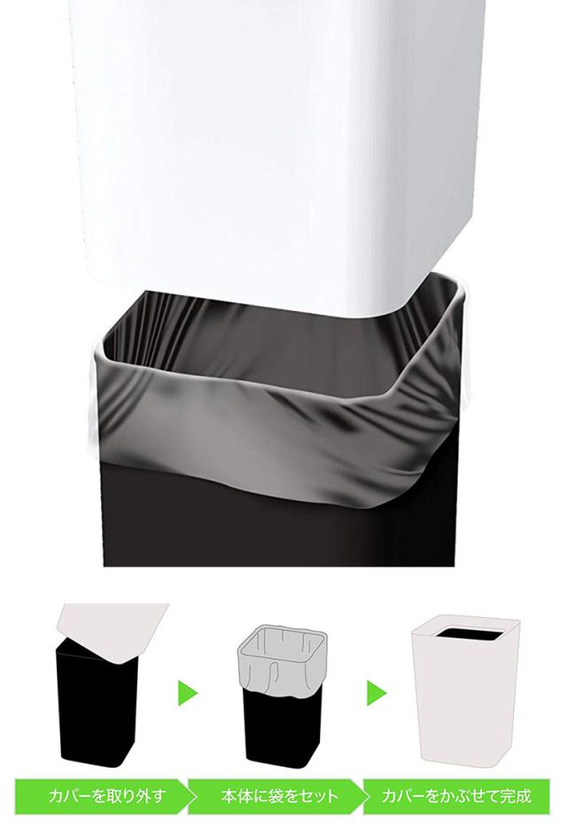●ゴミ袋を隠してスタイリッシュな空間を演出する2重構造 ●カバーを外し、本体にゴミ袋をセット。カバーをかぶせるとゴミ袋が隠れます ●ゴミ袋のセッティングもカバーをカバーをかぶせるだけだからラクラク ●毎日のお掃除やゴミ捨てが簡単に |