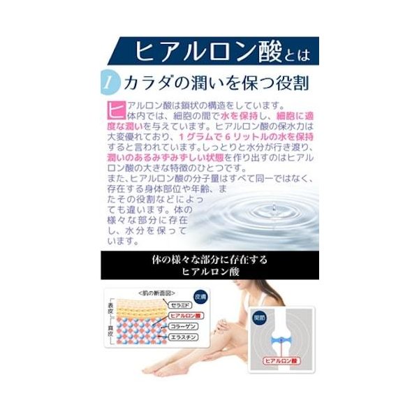 ヒアルロン酸の減少を十分に補うサプリメント。