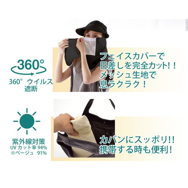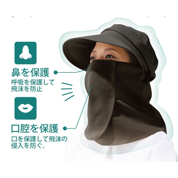 日よけ帽子 日焼け対策 ブラック フェイスカバー マスク ウイルス
