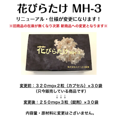 花びらたけ MH-3 1箱 250mg×3粒 錠剤 ×30袋入 サプリメント ミナヘルス ハナビラタケ 健康食品 グルカン 健康365 ハナビラタケ 日本製