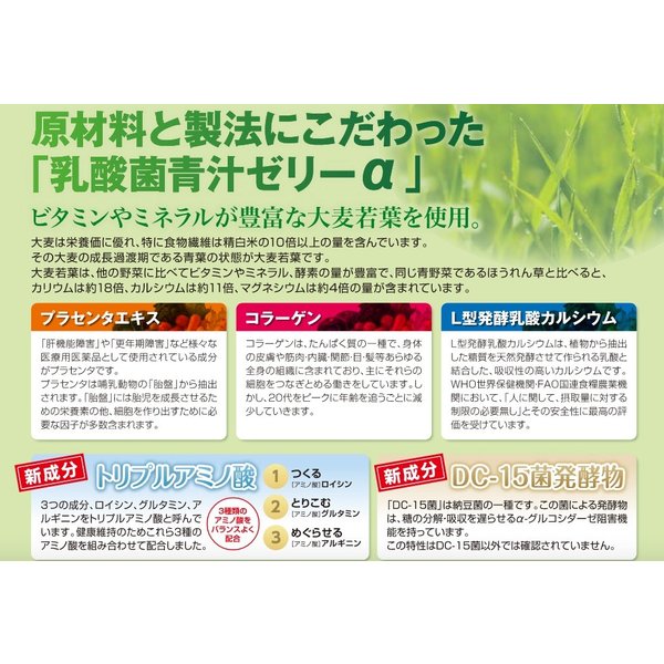 【ポイント10%】乳酸菌青汁ゼリーα 簡単にツルンと食べれるゼリーで不足しがちなビタミンや食物繊維を補いましょう☆ ゆうパック発送 日時指定・代引き可