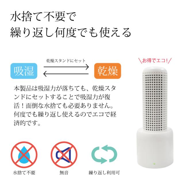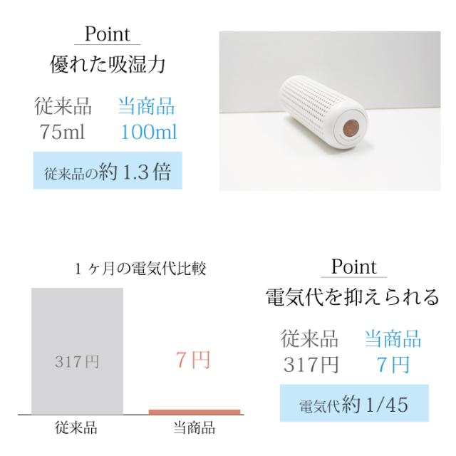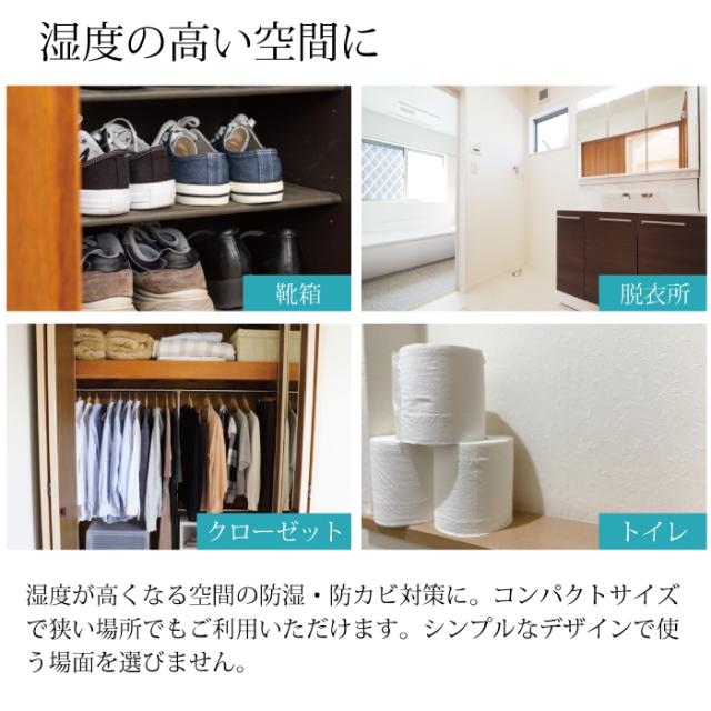 繰り返し使用できて、経済的なコンパクトでコードレスな除湿器です。クローゼット、押入れ、トイレ、シンク下など※狭い電源供給ができない場所に適した設計をしております。-ご購入前にお読みください-