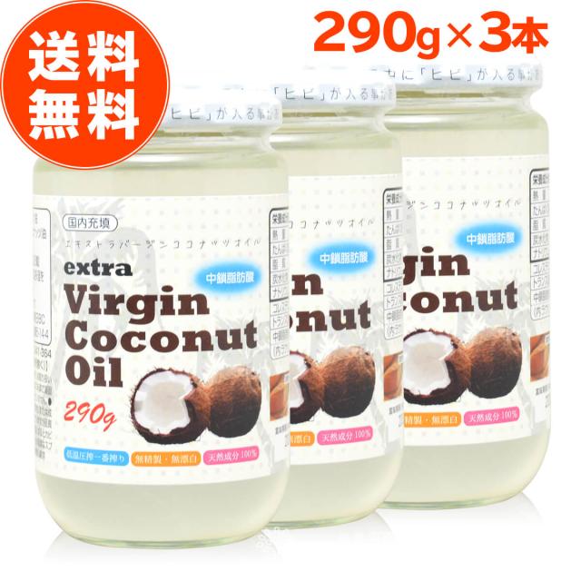 エキストラバージン ココナッツオイル 290g 3個セット 低温圧搾 コールドプレス 中鎖脂肪酸 ダイエット 未精製 無漂白 保存料不使用 エキストラバージンココナッツオイル 食用 スリランカ 国内充填 アーユルヴェーダ 加熱 料理 瓶