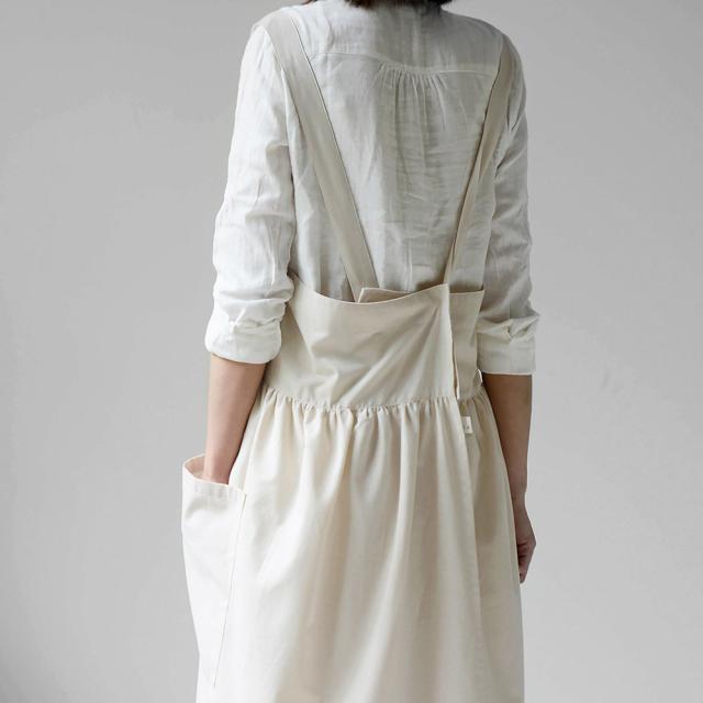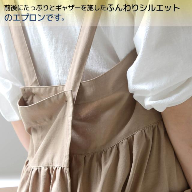 ■前後にたっぷりとギャザーを施したふんわりシルエットのエプロンです。