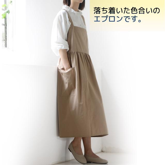ギャザーエプロン バッククロスエプロン ワンピースエプロン レディースエプロン 無地 ワークエプロン ロング丈エプロン シンプルエプロン カフェエプロン 軽量 レディース キッチン おしゃれ エプロン かわいい フリーサイズ 首掛け式