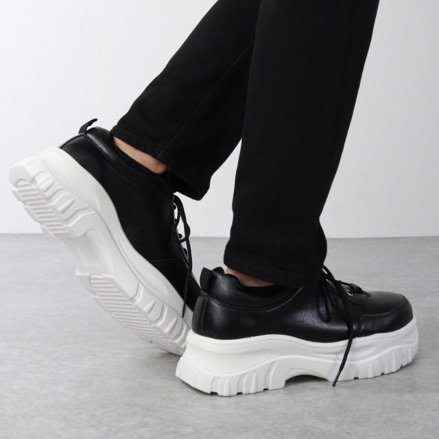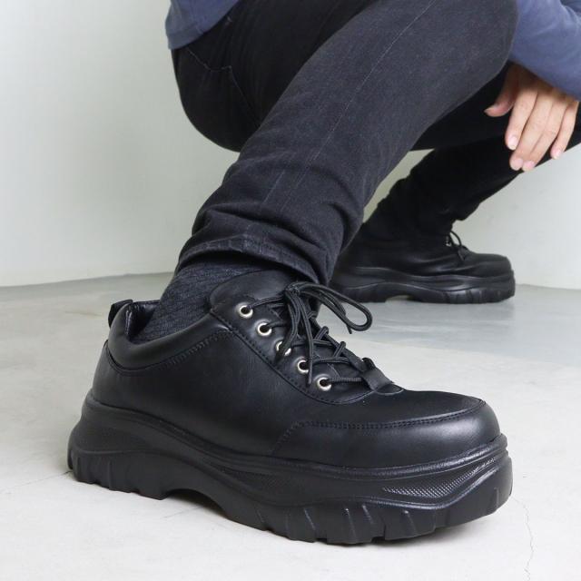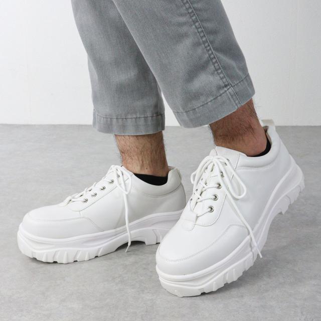 スニーカー メンズ ローカット ダッドスニーカー 厚底 6cmヒール 合成皮革 黒 幅広 3E No.ex100 25.0-27.0cm 身長アップ 足長 モノトーン ボリュームソール 疲れにくい 歩きやすい 韓国 おしゃれ ブラック 白 ホワイト exclamation エクスクラメーション カジュアル レザー