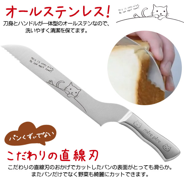 包丁 メルペール ネコ柄 パン切り包丁 オールステン パン切りナイフ パン包丁 刃物 切れ味抜群 パンスライサーナイフ かわいい おしゃれ ナイフ ほうちょう 送料無料 プチプレ ギフト プレゼント 結婚祝い 贈物 贈り物 キッチン用品 台所用品 新生活 一人暮らし 新生活2022_a