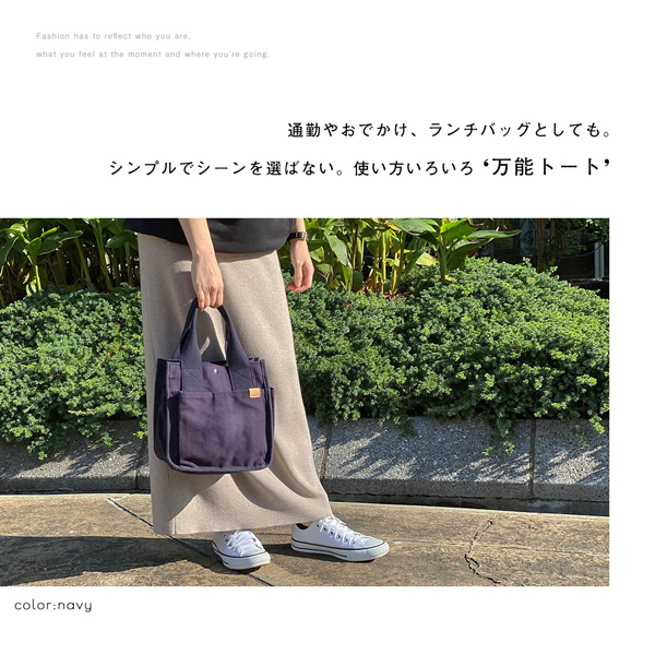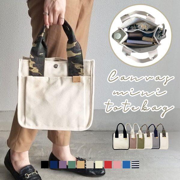 シンプルでシーンを選ばない。使い方いろいろ万能ミニトートバッグ。