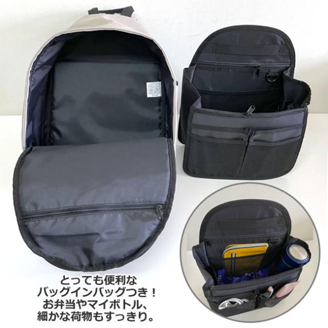 大人のカジュアルスタイルにぴったりのシンプルさが魅力。しっかりした素材のリュックです。とても機能的なバッグインバッグ(インナーバッグ)つき!