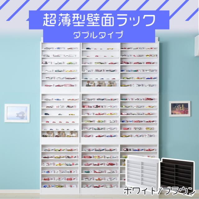 完成品超薄型 オープンシェルフ ワイドタイプ 送料無料 木製 オープンラック 薄型 スリム 白 ホワイト ブラウン 2段 壁面収納 コレクションケース フィギュアケース 一面 積み重ね 薄い ウォールシェルフ 飾り棚 可動棚