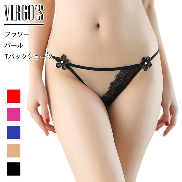 送料無料 VIRGOS フラワーパール Tバックショーツ 単品 ショーツ レース パール フラワー セクシー 可愛い Tバック レディース ランジェリー パンティ 女性 下着