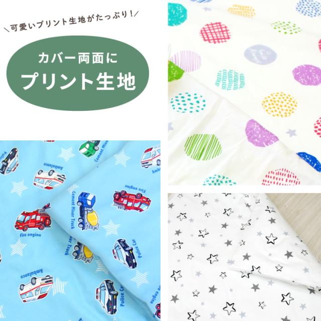 お昼寝掛布団カバー 90×120cm 綿100% ドット 水玉 車 スター 星 アニマル 動物 雲 青 ホワイト 男の子 女の子 保育園 幼稚園 入園準備 洗い替え 掛け布団カバー お昼寝布団 掛けカバー ネームタグ メール便発送(ポスト投函) NP