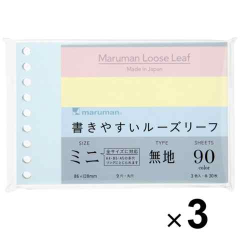 【まとめ買い】 3個セット マルマン 書きやすいルーズリーフミニ 無地 カラーアソート 小さい メモ ノート 勉強 仕事 ダイアリー 送料無料