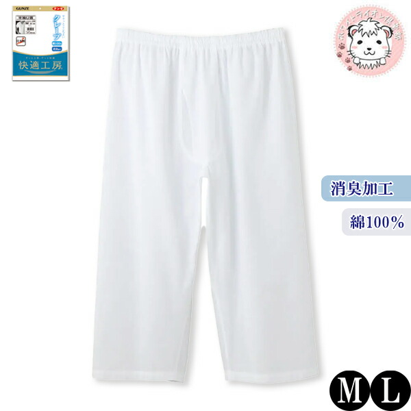 グンゼ 快適工房 半ズボン下 クレープ 消臭 綿100% 前あき M/L | 腰ゴム取替可 春夏 無地 メンズ 綿 ステテコ 下着 肌着 インナー KQ6507 KQ6507A GUNZE