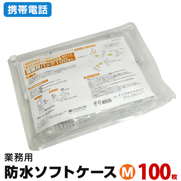携帯電話 防水ケース 業務用100枚パック 折りたたみ携帯電話用Mサイズ AQB-FM100 ソフトケース 携帯ケース
