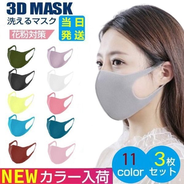 洗えるマスク おしゃれマスク ウレタンマスク 11色 立体 伸縮性あり 繰り返し 当日発送 洗える 紫外線 蒸れない 肌荒れしない 耳痛くない おしゃれ 個別包装 男女兼用 花粉 3枚セット