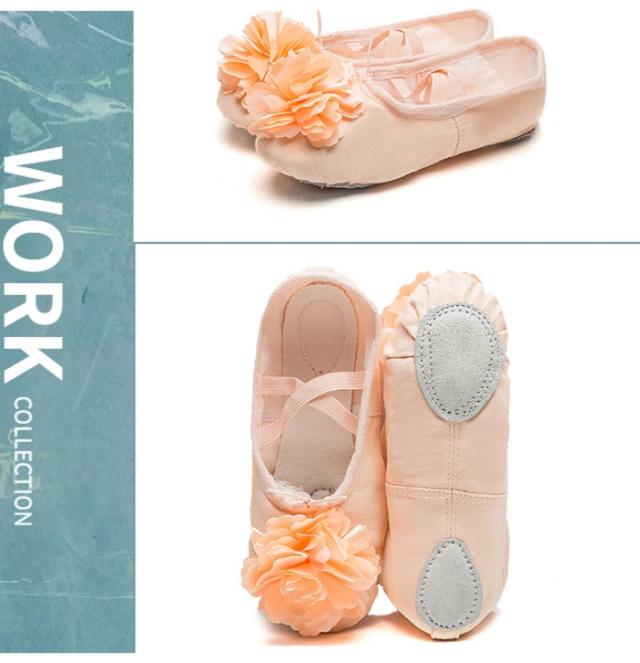 子供 バレエシューズ 子ども 布製 薄ピンク バレエ レオタード 前革 スプリット クロスタイプ キャンパス バレエ シューズ フラダンス フィットネス 花 可愛い 15.5/16/16.5/17/17.5/18/18.5/19/19.5/20/20.5/21/21.5/22/22.5/23/23.5/24cm