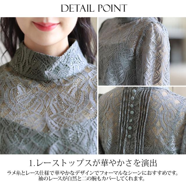 ラメ糸が使用されたレーストップスが華やかさを演出。