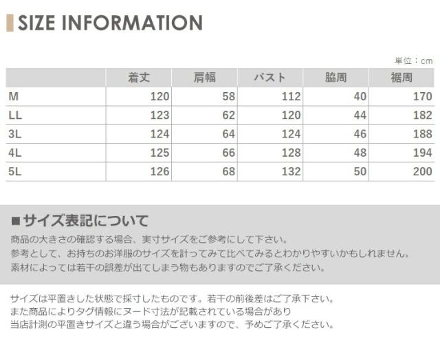 5L:着丈126 肩幅68 バスト132 脇周50 裾周200