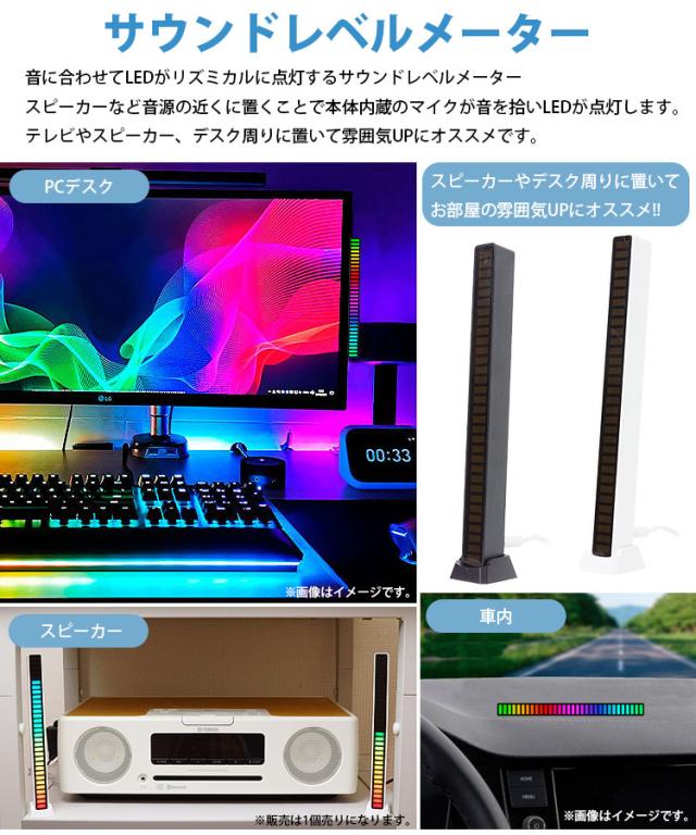 サウンドレベルライト USB給電式 イルミネーション メーター インジケータ LEDライト 車載 デスク スピーカー周り