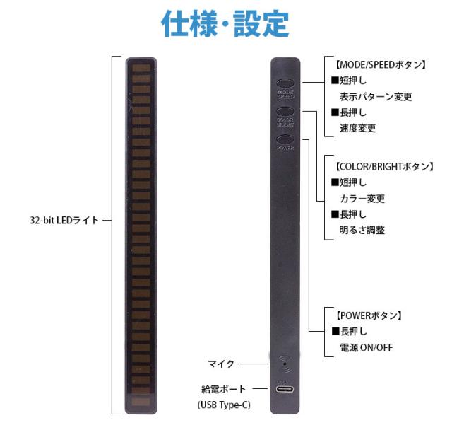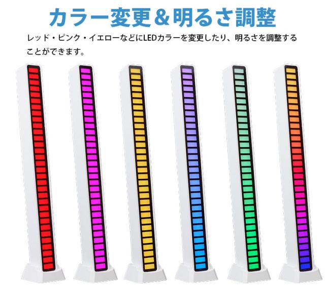32個の独立制御されたLEDを搭載しており、本体内蔵のマイクが音に反応してそれぞれのLEDが点灯します。
