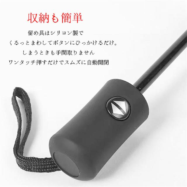 | 商品特徴 | 1、優れた耐風性:丈夫で壊れにくい8本骨!しっかりとした作りで風雨から守ってくれます。アルミニウム合金製中棒とガラス繊維&スチール製の傘骨を採用するので、錆びなくて、普通の傘より風に強い設計で、鉄製の傘より結構軽くて、豪雨、強風にも安心できます。 2、超撥水性:高密度のNC布と撥水加工なので、普通の折り畳み傘より撥水性があり、豪雨の中でも、体が濡れることはありません。折りたたみ傘に超撥水のテフロン加工を施すので傘を閉じた後、軽く振るだけで、水滴が簡単に振り払えます。 3、収納ポーチ付き:濡れた折り畳み傘の収納ポーチ付きます。訪問先や電車バスに乗る際のわずらわしさが解消されます。 4、持ち運びやすい:ワンタッチボタンで一秒で開閉できるので便利で安全です。ガラス繊維&スチール製により軽くて持ちやすく、一般的な傘と同じ八本骨で耐久性も十分です。 5、全自動開閉折りたたみ傘。耐久性のある高密度で防水性の高い布地を利用しているため、撥水性に非常に優れております。 |