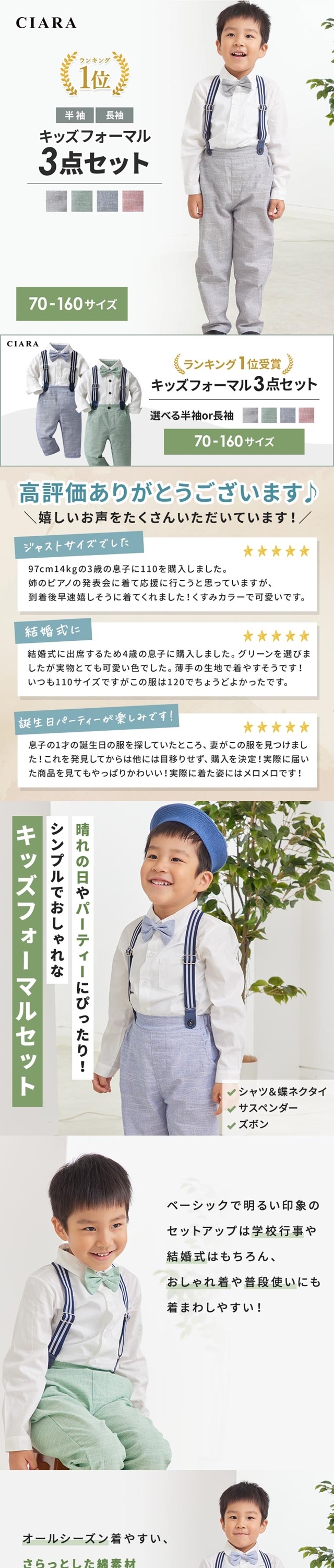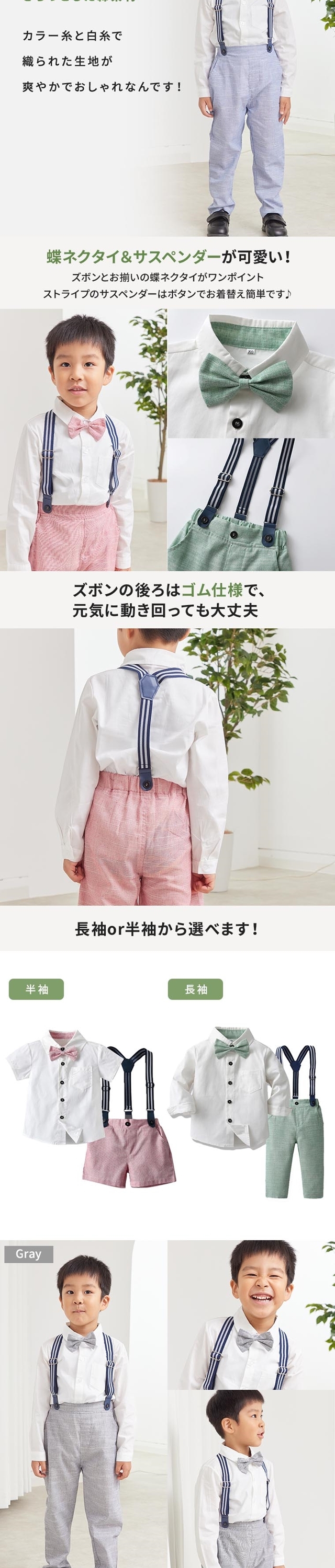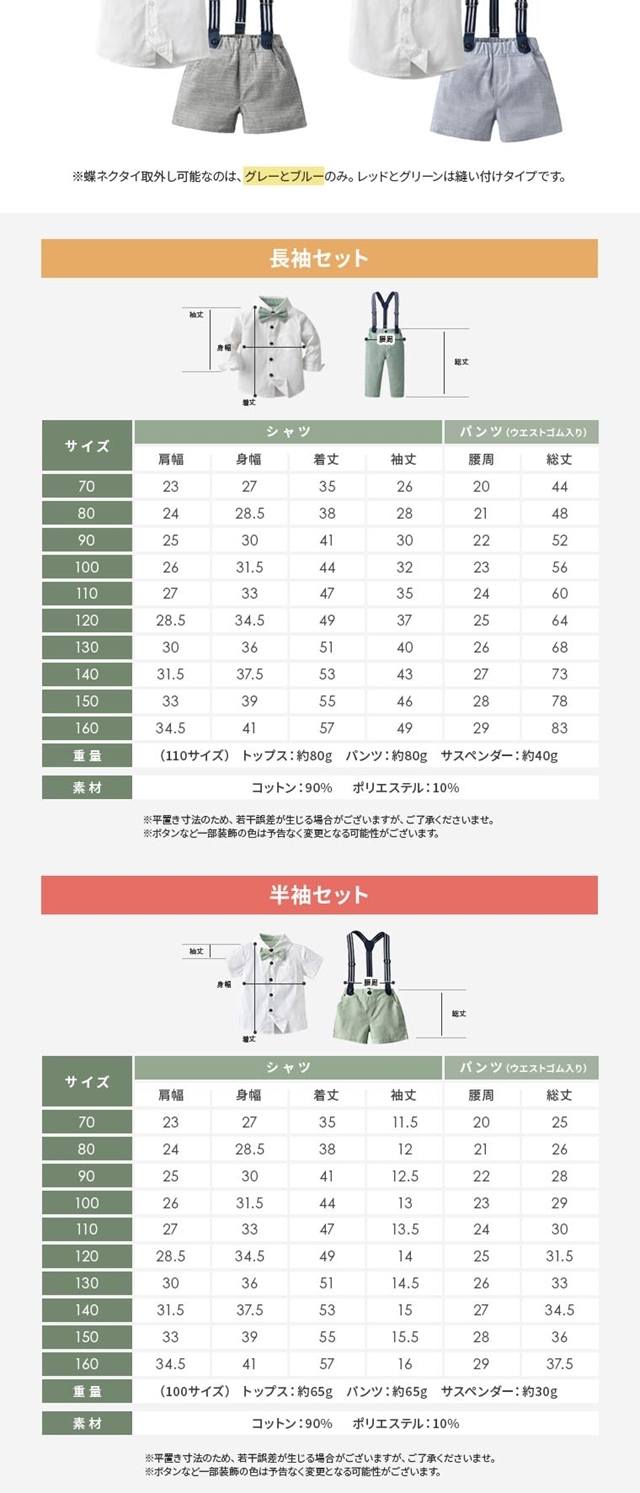 - 親戚の集まり用に購入しました 梱包も丁寧でシワもなく、注文から2日で到着し助かりました サスペンダーは調整が簡単なので長く着れそうです 色味等も画像通りでした、色白なので淡い緑が似合いとても可愛いです...