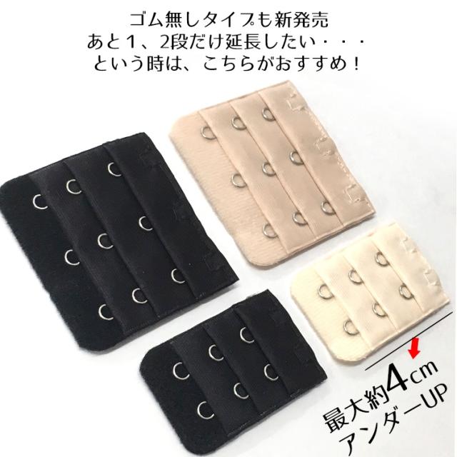 送料無料 2個セット 選べるカラー&ホック数 延長ホック 増設ホック 2列 3列 2段 3段 黒 縦3.3cm 5.8cm ゴム ブラック ベージュ 延長フック 増設フック (下着 レディース 女性 ブラジャー 大きいサイズ ブラホック 調節 アジャスターフック 延長ホック)