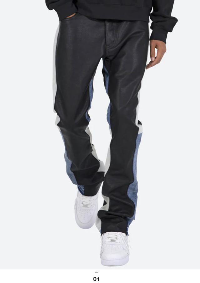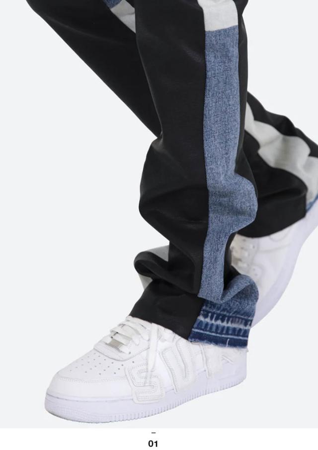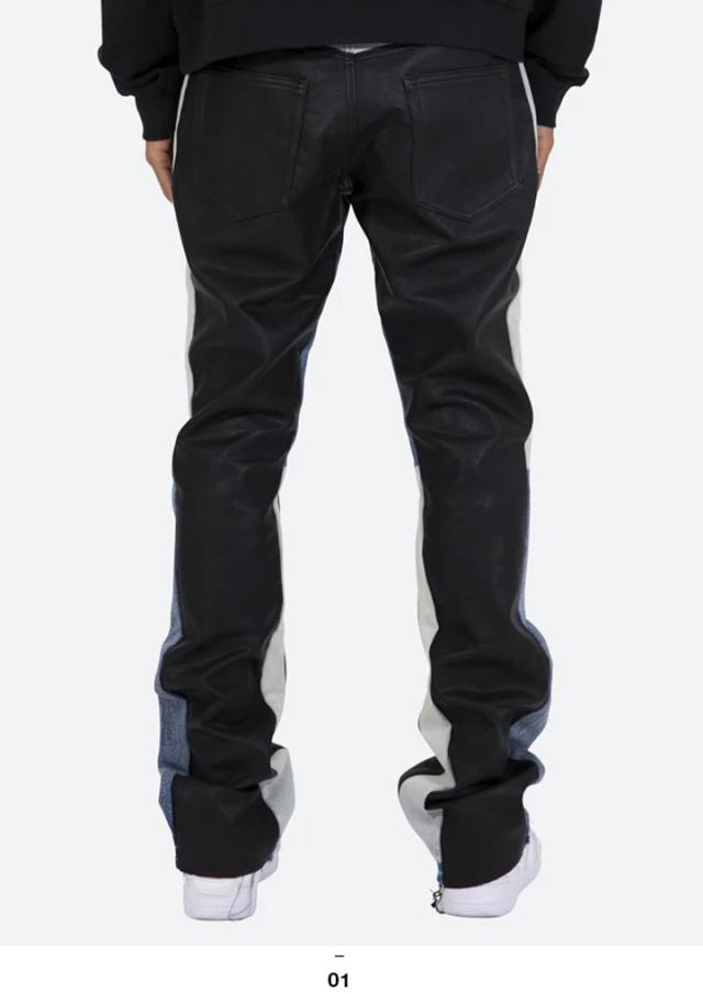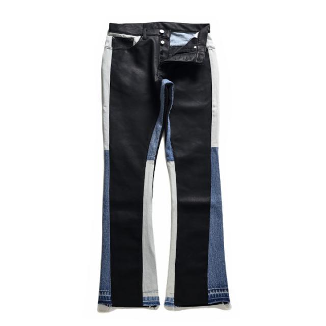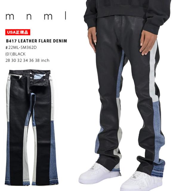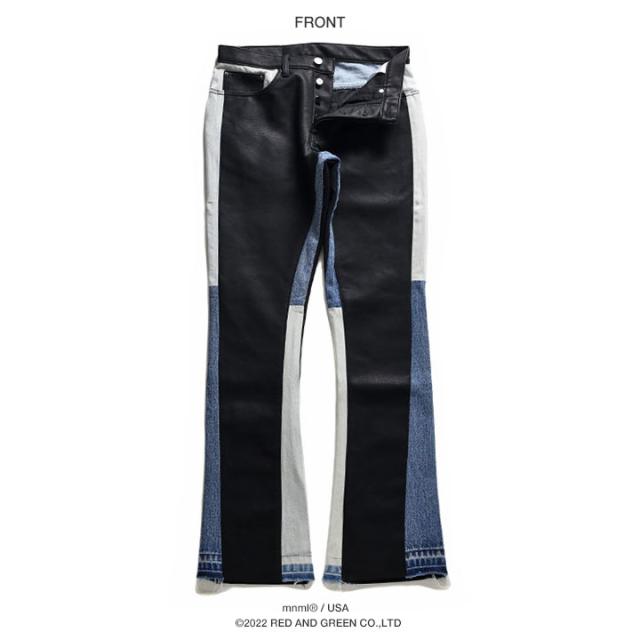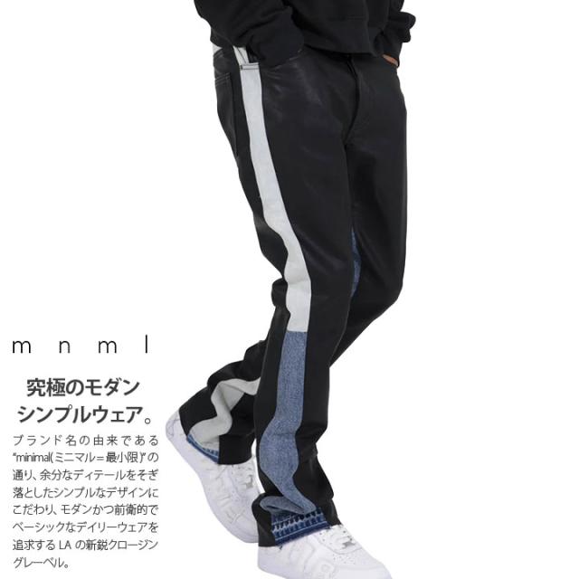 mnml デニム ジーンズ レザーパンツ メンズ 黒 ミニマル ジーパン Gパン パンツ スリム 細身 おしゃれ 切り替え フレアパンツ フレア ブーツカット フレアジーンズ ラインパンツ b系 ヒップホップ ファッション ストリート系 ハイ ブランド 22ML-SM362D