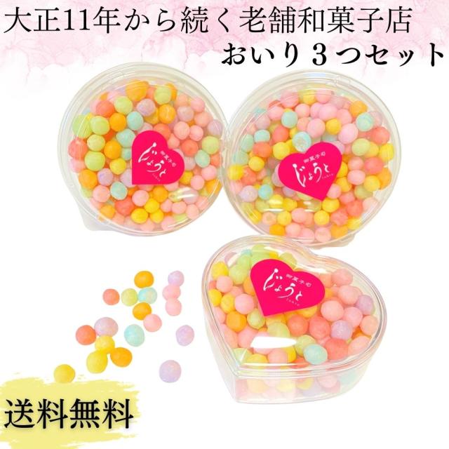 【送料無料】香川県 おいり 3個 セット ハート型 伝統菓子 御菓子 お菓子 讃岐 カップ 誕生日 結婚式 引き出物 入学祝 七五三 出産祝い 初節句 ギフト プレゼント お中元 贈答 ご褒美 ASMR ひな祭り