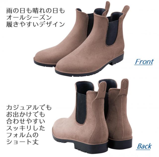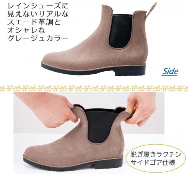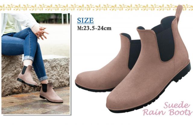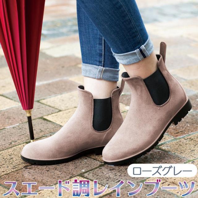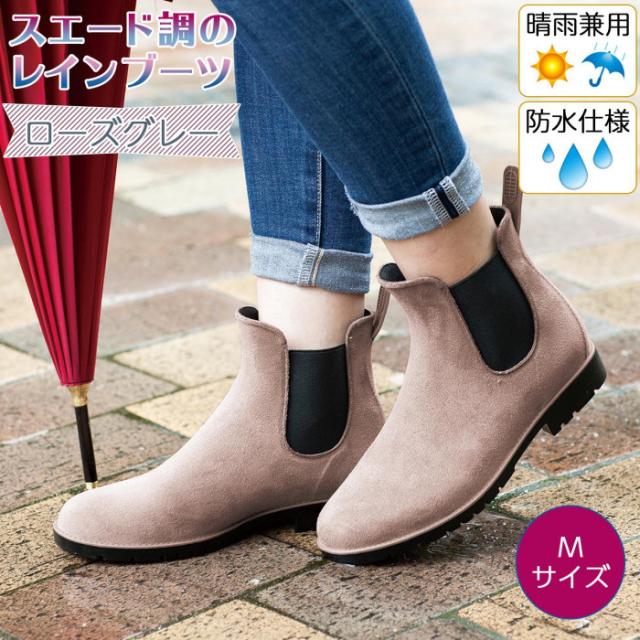 スエード調レインブーツ(ローズグレー) M オシャレなカラー&デザインのレインブーツ 4990911404089