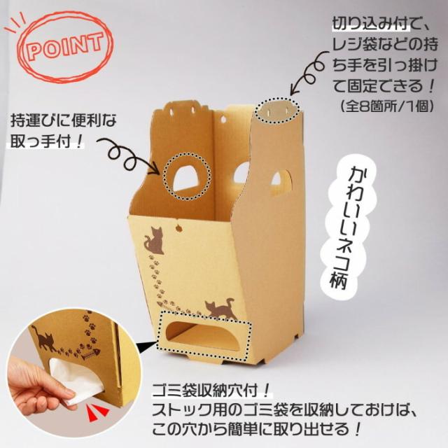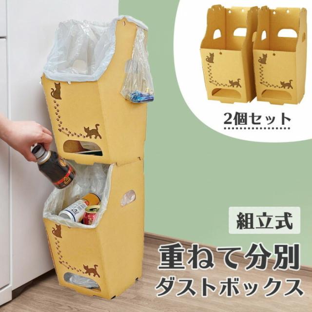 | 上下2段に重ねて置けるから、省スペースにピッタリ!持運びに便利な取っ手付。袋を引っ掛けられる切り込み付で、レジ袋などの持ち手を引っ掛けて固定することができます。組み立て簡単で、カッターやテープなども必要ありません。ご家庭だけでなく、オフィスなどのデスクの下にもピッタリ! ※撮影の状況やご覧いただく環境により、実際の商品と多少色味が異なって見える場合がございます。ご了承ください。 |