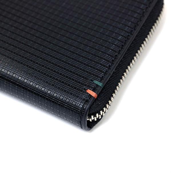 本体素材には「ピンチェック」柄をエンボス加工で表現した牛革を使用しています。ブランドカラーの手かがりステッチでブランドらしさをシンプルに表現しています。