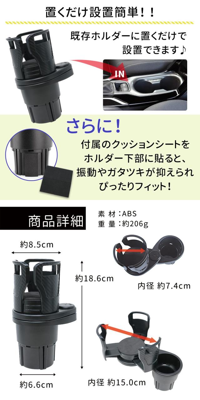 【mitas公式】マルチカップホルダー ドリンクホルダー 多機能カップホルダー 車用カップホルダー ダブルカップ 車用 360度回転 調整 調節 可能 スマホホルダー タブレット 取付簡単 紙パック カップ麺 シンプル デザイン 2in1 車載 車専用ホルダー TN-MCHR