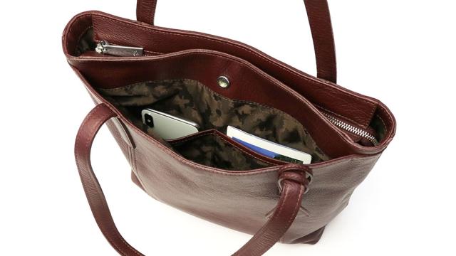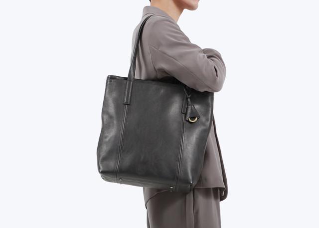 エレガントで豊かな表情が楽しめる『Shrink Leather』をふんだんに使用したトートバッグ。縦型のフォルムは横型に比べ、よりすっきりとした印象を演出してくれます。また、素材を極限まで薄く漉いているため、見た目以上に軽くお待ちいただけるのも特徴です。