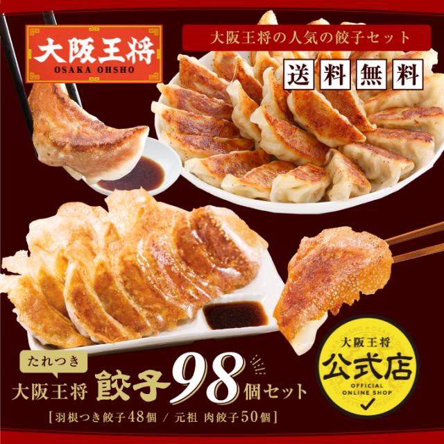 【大阪王将】餃子98個セット「羽根つき餃子12個入×4、肉餃子50個入×1」(たれ付き)【送料無料】冷凍餃子 お弁当 惣菜 ぎょうざ 冷凍食品 ギフト 業務用 仕送り 福袋