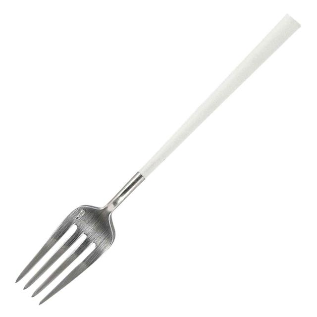ポルトガル最大のカトラリーメーカーBelo Inox社のデザートフォークです。ケーキやデザートはもちろん、テーブルフォークよりひと回り小さいので、軽食でもお使いいただけます。どんな食器とも相性が良いシンプルなバイカラー仕上げです。来客時にも活躍する洗練された上品なデザインです。