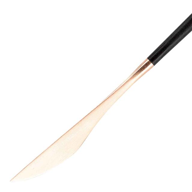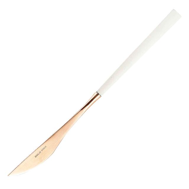 ポルトガル最大のカトラリーメーカーBelo Inox社のテーブルナイフです。お肉やお魚などのメイン料理に使いやすいサイズです。先端はピンクゴールドで可愛らしく、テーブルにそっと華やかさを添えてくれます。来客時にも活躍する洗練された上品なデザインです。