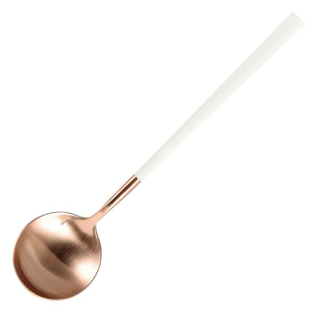 ポルトガル最大のカトラリーメーカーBelo Inox社のテーブルスプーンです。大きめの具材がごろっと入った、シチューやカレーに使いやすいサイズです。先端はピンクゴールドで可愛らしく、テーブルにそっと華やかさを添えてくれます。来客時にも活躍する洗練された上品なデザインです。
