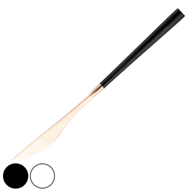 ポルトガル最大のカトラリーメーカーBelo Inox社のテーブルナイフです。お肉やお魚などのメイン料理に使いやすいサイズです。先端はピンクゴールドで可愛らしく、テーブルにそっと華やかさを添えてくれます。来客時にも活躍する洗練された上品なデザインです。