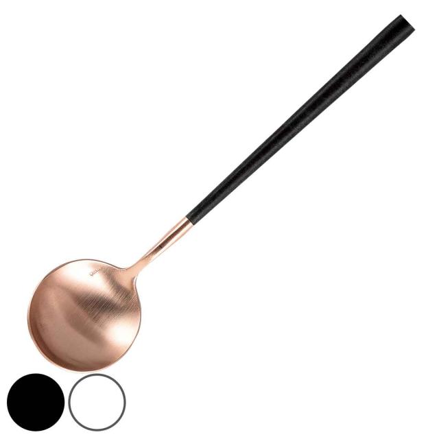 ポルトガル最大のカトラリーメーカーBelo Inox社のテーブルスプーンです。大きめの具材がごろっと入った、シチューやカレーに使いやすいサイズです。先端はピンクゴールドで可愛らしく、テーブルにそっと華やかさを添えてくれます。来客時にも活躍する洗練された上品なデザインです。