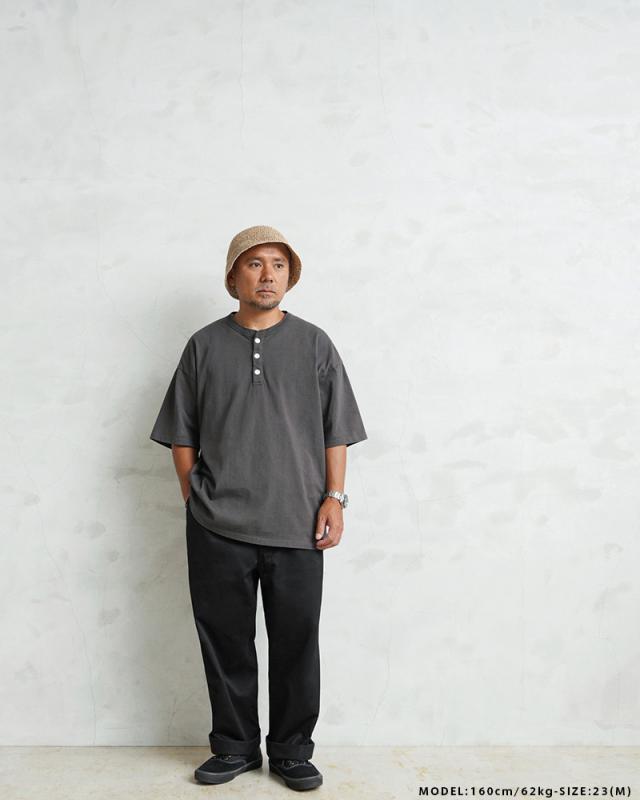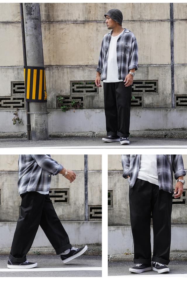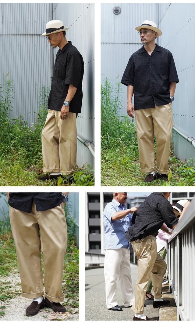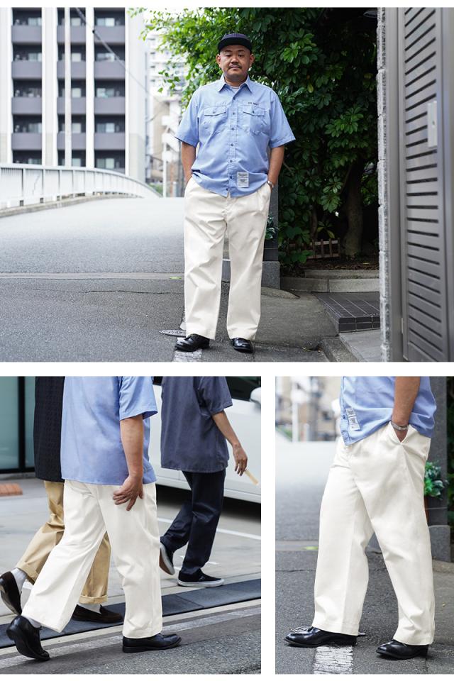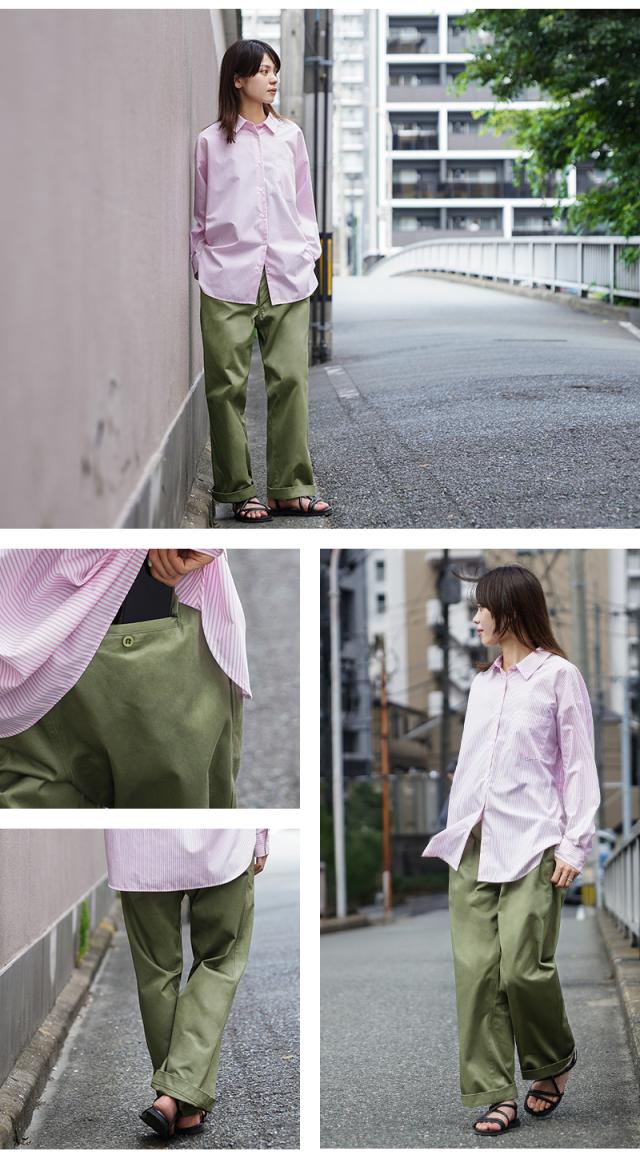 ルーズ目なシルエットはロールアップした時のバランスが大変よく、ジャストで履くのはもちろん、オーバーサイズをウエストを絞って履くことにより、よりワイドなシルエットをお楽しみ頂けます。股下も70cmと75cmと選べる2サイズとなっています。