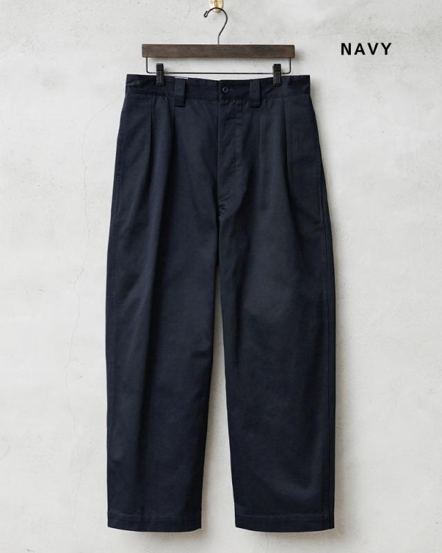 | 商品説明 | WAIPER.inc フランス軍 1950〜60年代 M-52 ヴィンテージ ツータック WESTPOINT チノトラウザー のご紹介です。 品名:FRENCH ARMY M-52 WESTPOINT CHINO TROUSERS - TWO TUCK MODEL 品番:WP1002 フランス軍の名作パンツのひとつであるM-52チノトラウザーをWAIPER.incが素材にこだわり忠実再現 M-52は1950〜1960年代にかけてフランス軍に採用されていたボトムスで、タックの入ったゆったりとしたヒップ周りと、太めのルーズストレートシルエットが特徴です。 ルーズ目なシルエットはロールアップした時のバランスが大変よく、ジャストで履くのはもちろん、オーバーサイズをウエストを絞って履くことにより、よりワイドなシルエットをお楽しみ頂けます。股下も70cmと75cmと選べる2サイズとなっています。 ウエストのツータック、深い股上にボタンフライ、フラップ付きのバックポケットなどディテールは非常にシンプル。半世紀以上前にデザインされたディテールを細部までこだわって再現しました。 素材には国産テキスタイルメーカーのウエポンクロスを採用。ウエストポイント(通称ウエポン)は双糸の糸を使用し非常に高密度で光沢感のあるなめらかな質感ながら、タフなワークウェアらしい無骨さを兼ね備えており、履き込むほどに味の出る素材となっています。 ヴィンテージの放出もめったに見かけなくなったM-52チノトラウザー。WAIPERが自信を持ってお薦めするイチオシの一本です。 | ||||||||||||||||||||||||||||||||||||||||||||||||||||||||||||||||||||||||||||||||||||