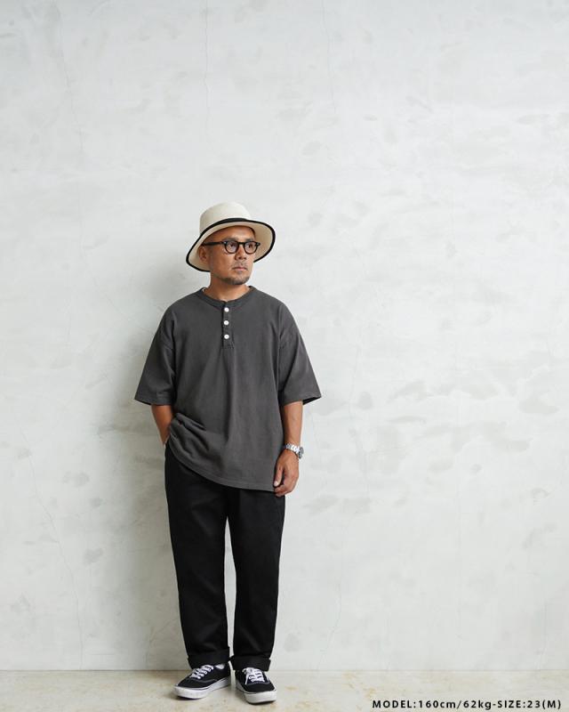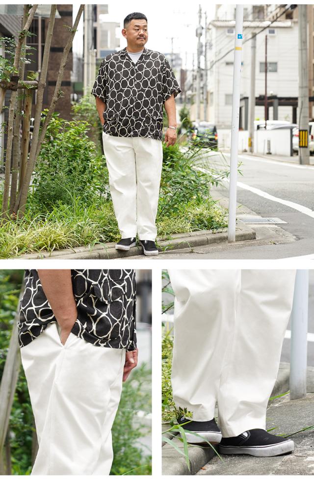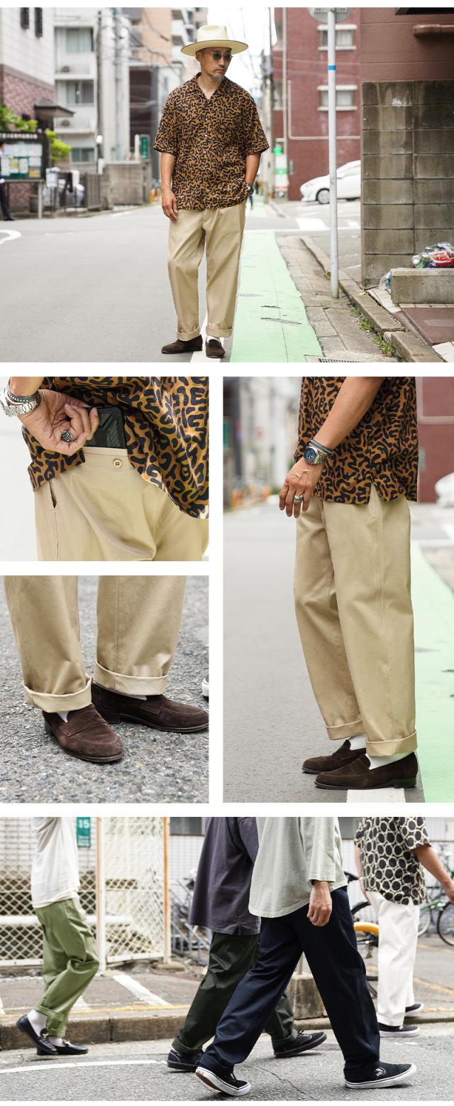 ルーズ目なシルエットはロールアップした時のバランスが大変よく、ジャストで履くのはもちろん、オーバーサイズをウエストを絞って履くことにより、よりワイドなシルエットをお楽しみ頂けます。股下も70cmと75cmと選べる2サイズとなっています。