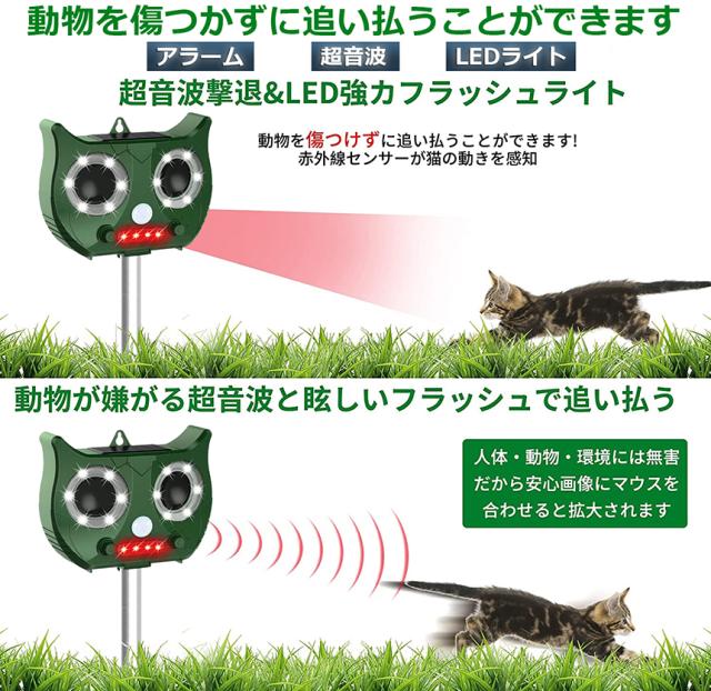 猫よけ 対策 3台セット 猫除け ねこよけ 猫よけグッズ 鳥よけ 動物撃退器 害獣撃退器 人気 猫退治 糞被害対策 糞被害 鳥害対策 猫除け 鳥除け 犬除け ネズミよけ USB充電 ソーラー充電 LED強力フラッシュライト 日本語説明書付き